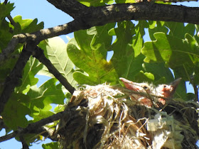 29 iunie, surpriza mare si frumoasa, puisorii au aparut la locul lor in cuib, activi, cu cioculetele in aer, uneori odihnindu-se....suficient de mari acum pentru a li se zari capsorul. Nu imi dau seama exact ce a fost cu ei in ziua precedenta, mi-e greu sa cred ca parasisera cuibul, asa mici fiind, posibil sa fi infruntat furtuna lipiti de fundul cuibului, cu gherutele bine stranse si de teama vantului sa fi ramas asa timorati toata ziua precedenta. 29 iunie e ultima zi in care i-am mai putut observa, trebuind sa plec din zona.